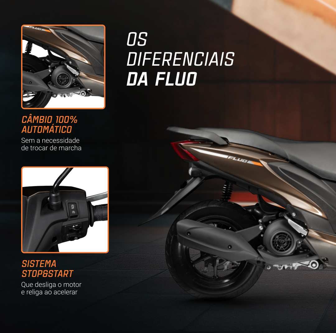 Os diferenciais da FLUO tornam essa a sua scooter completa e tecnológica, que oferece agilidade, conforto, versatilidade e um design de tirar o fôlego.